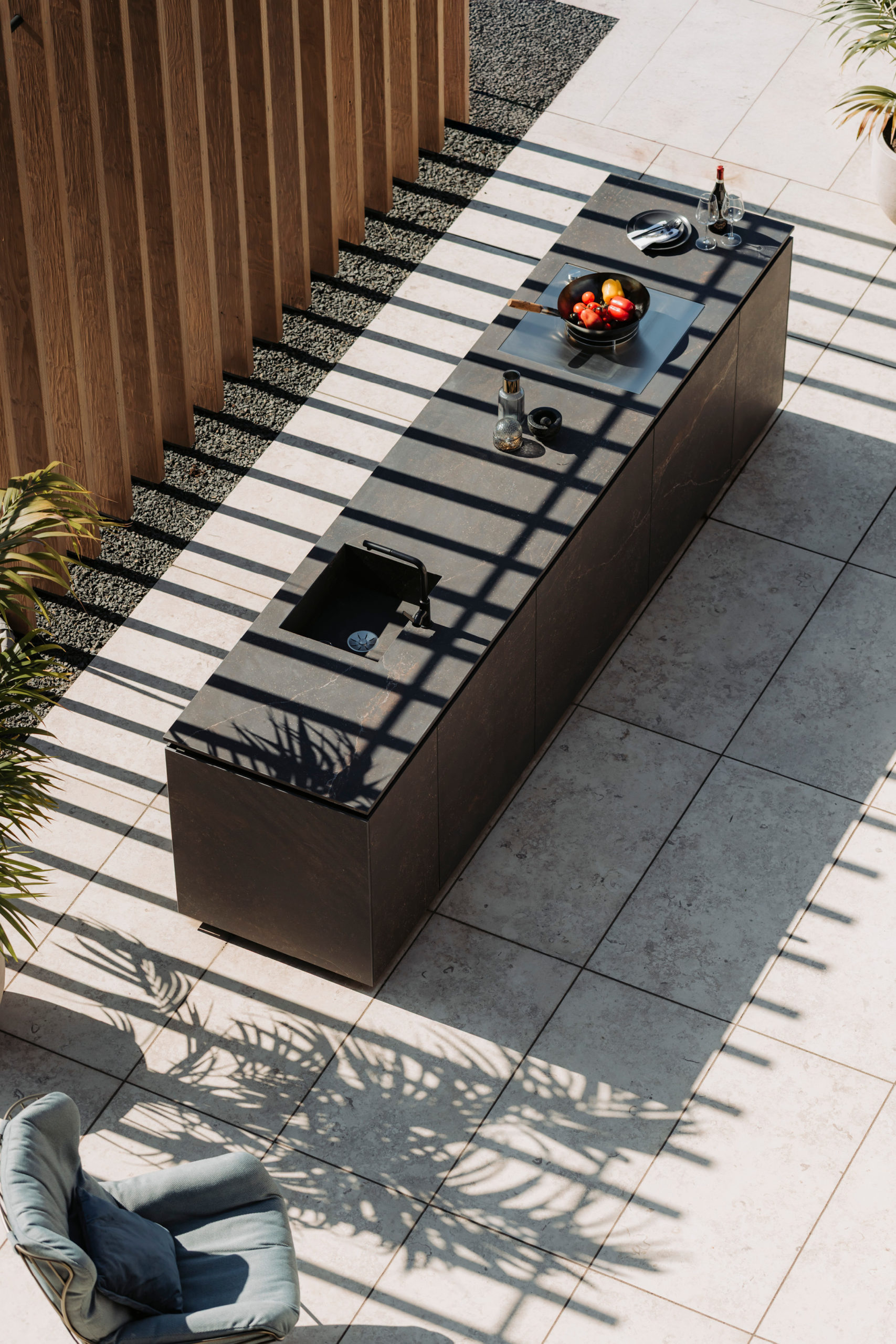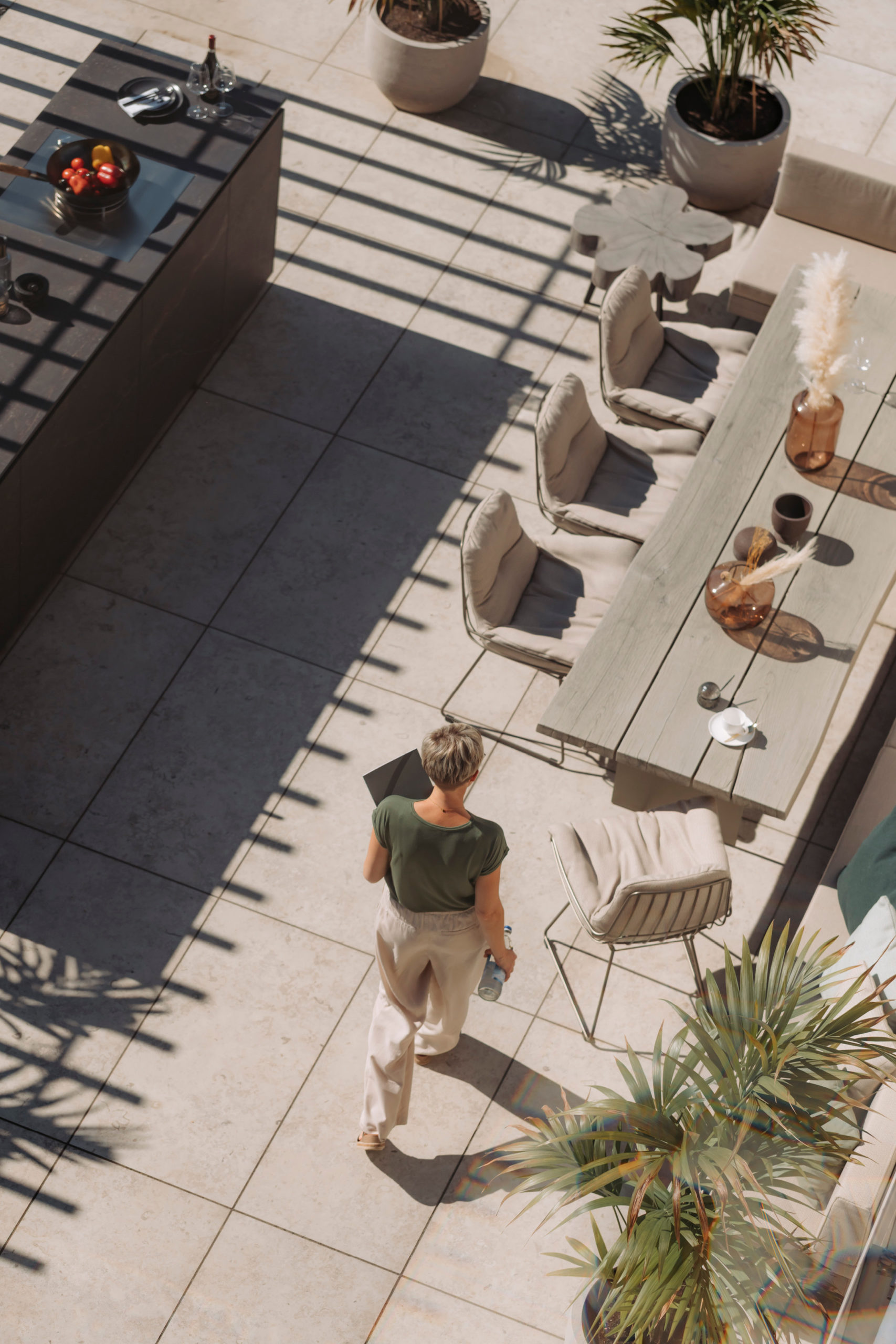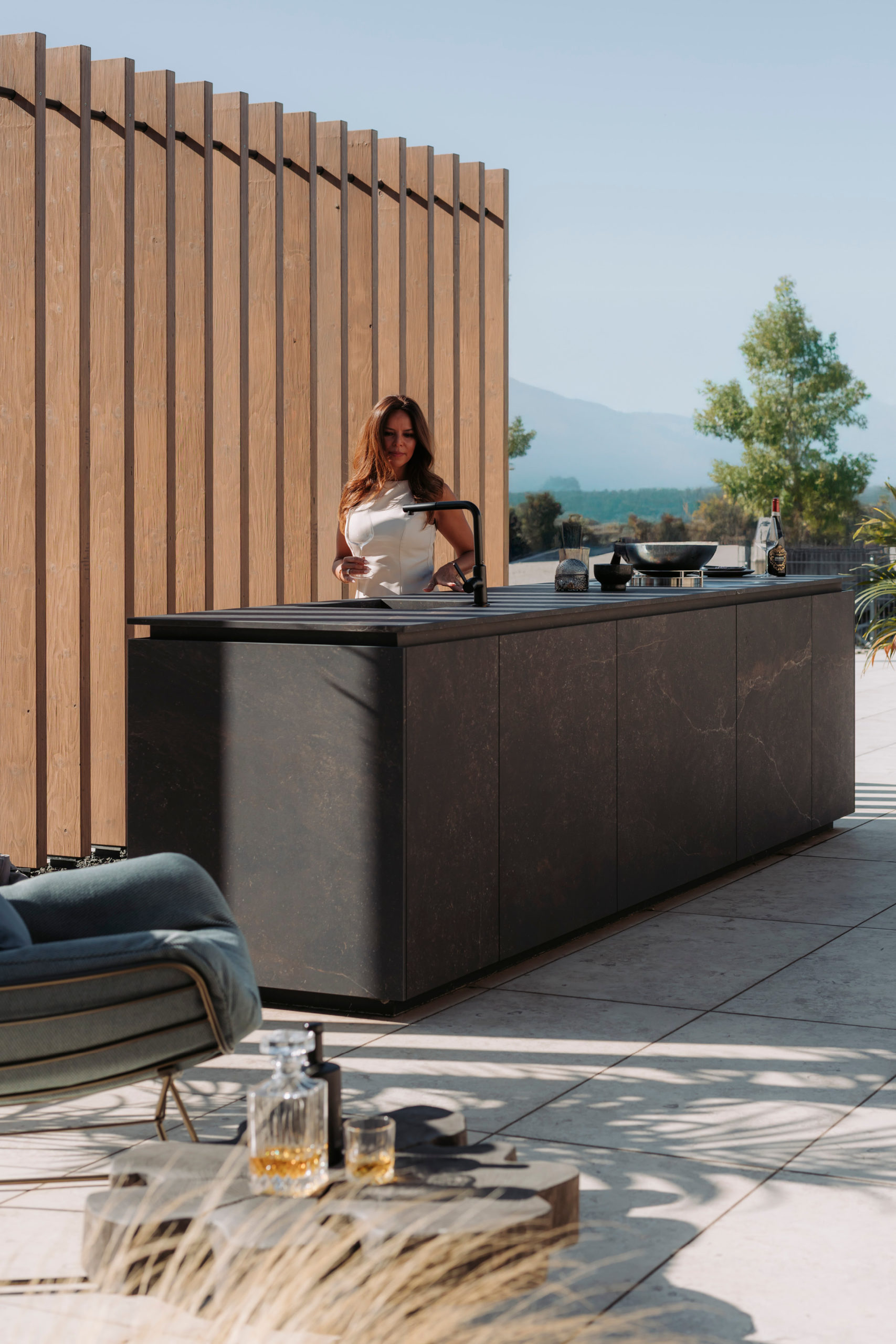 Mit hochwertiger Großkeramik gestalten Sie fließende Übergänge von innen nach außen und erweitern Ihren Wohnraum ins Freie. Ob Terrassenplatten, keramische Fassaden, Outdoorküchen oder der Grilltisch „Olento“ – alle Elemente werden Teil eines durchgängigen architektonischen Konzepts. Die UV-beständige und frostresistente Porzellankeramik mit einer Wasseraufnahme von unter 0,2 % ist ideal für den ganzjährigen Einsatz im Außenbereich. Großformat-Keramik verbindet zeitloses Design mit technischer Beständigkeit – langlebig, pflegeleicht und perfekt für anspruchsvolle Outdoor-Lösungen.
